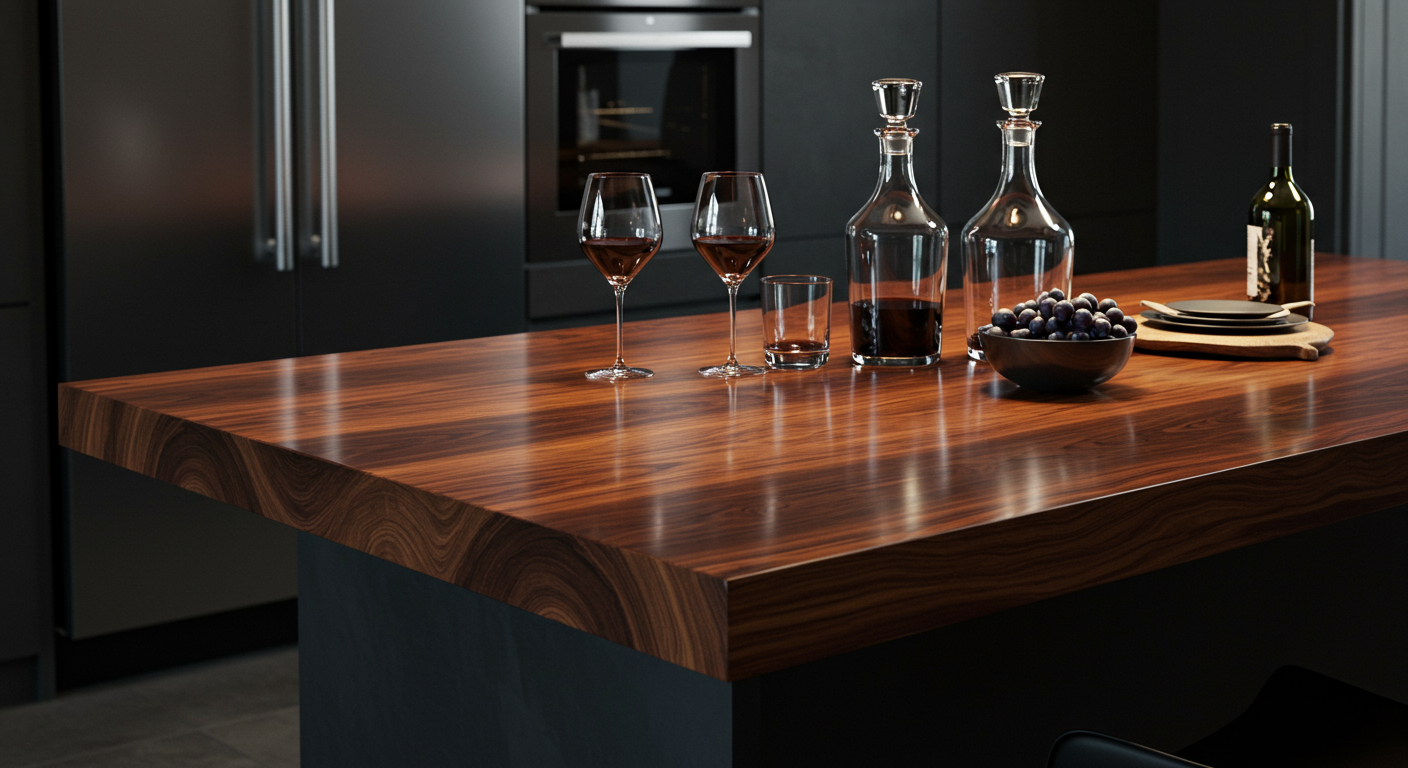 Pros: Scratches can be buffed out. Stain and bacterial resistant. Can be seemless. Less expensive than granite or quartz. Won’t stain and does not need to be sealed.