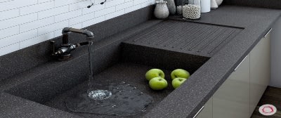 Lastly, we will talk about solid surface countertops. Similar to quartz counters, they are made up of resins and minerals. But in the case of solid surface, the mix is 1/3 resins (acrylic-based resins are superior to the polyester resins) and 2/3 minerals. The mineral base is what makes it different from quartz. Where quartz uses crushed and waste from natural stone and glass, solid surface counters use a powder called ATH which stands for aluminium trihydate. It is a fine, white powder that helps the solid surface maintain its smooth consistency. Though solid surface doesn’t have the same depth and luster found in quartz, the results are still quite stunning and acquired at a much friendlier price.
