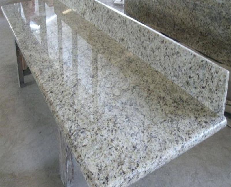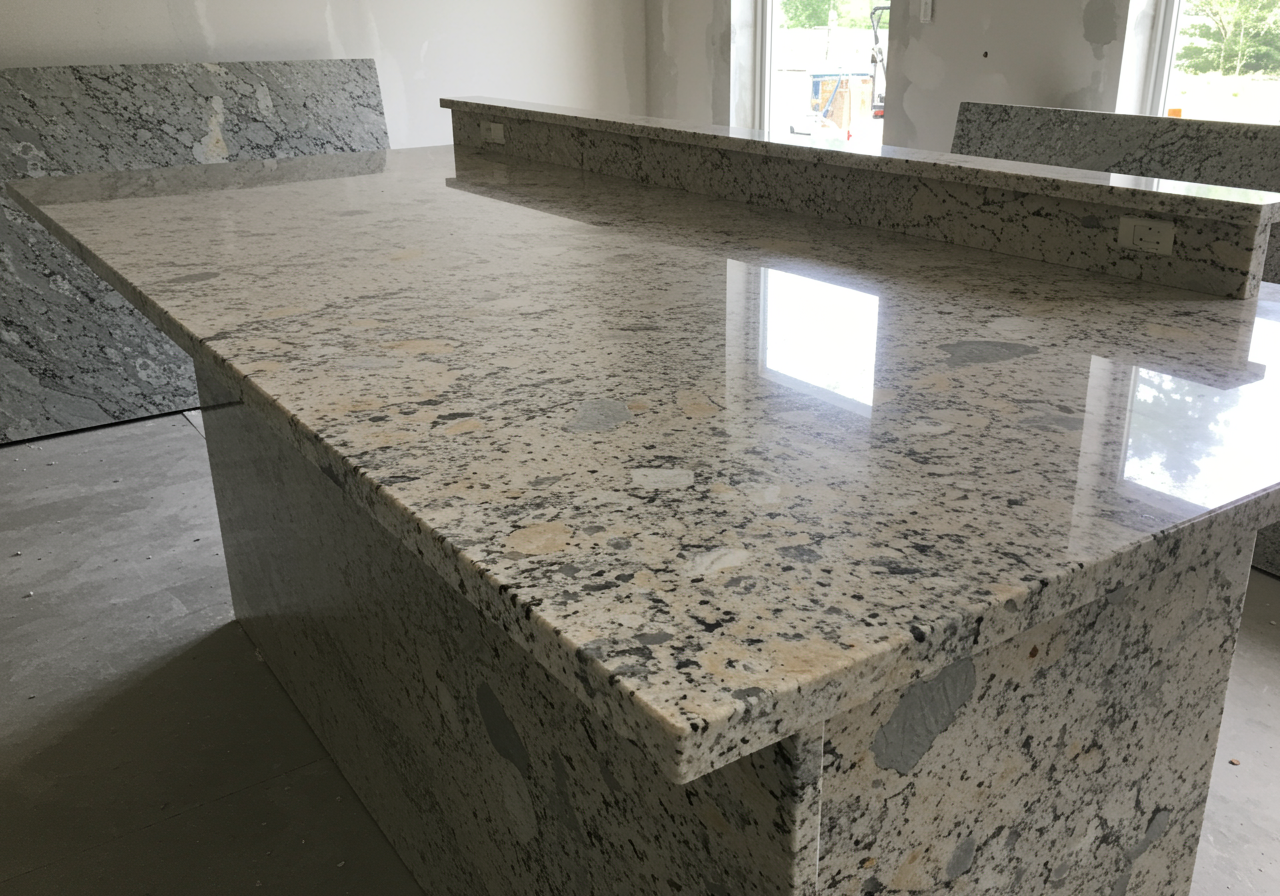 Front edge and side edges has already be fabricated on this prefabricated granite counter.