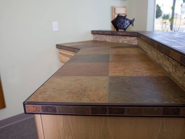 With all the solid surface options today, tile has fallen out of favor for the countertop portion of the project. Yet, there are some pretty interesting applications that will bring beauty and interest into the space. I recently used tile in an outdoor kitchen because it offered the ability to create an artistic touch. Consider tile in light traffic areas such as a powder room or bar area or maybe just a small section of your kitchen. Have fun mixing and matching the wide range of tiles and create an eye catching installation.