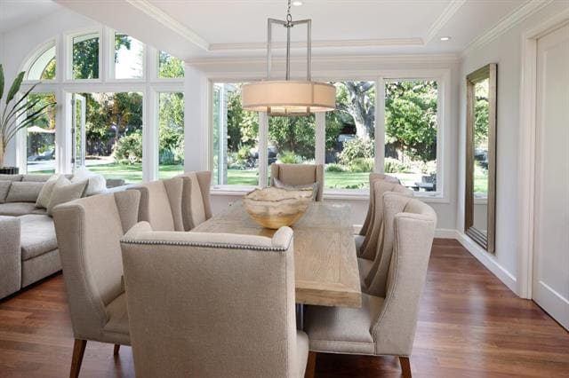 SHOP THE LOOK. Become familiar with what is being installed in the higher priced homes and look for a similar look. There are many great websites with reasonably priced merchandise that follow the high priced trends. In the picture on the left, I installed a dining room chandelier priced at $488 into a townhouse in Silicon Valley listed at $899,000. The picture on the right is from a new listing, also in Silicon Valley, but listed at $9,100,000.