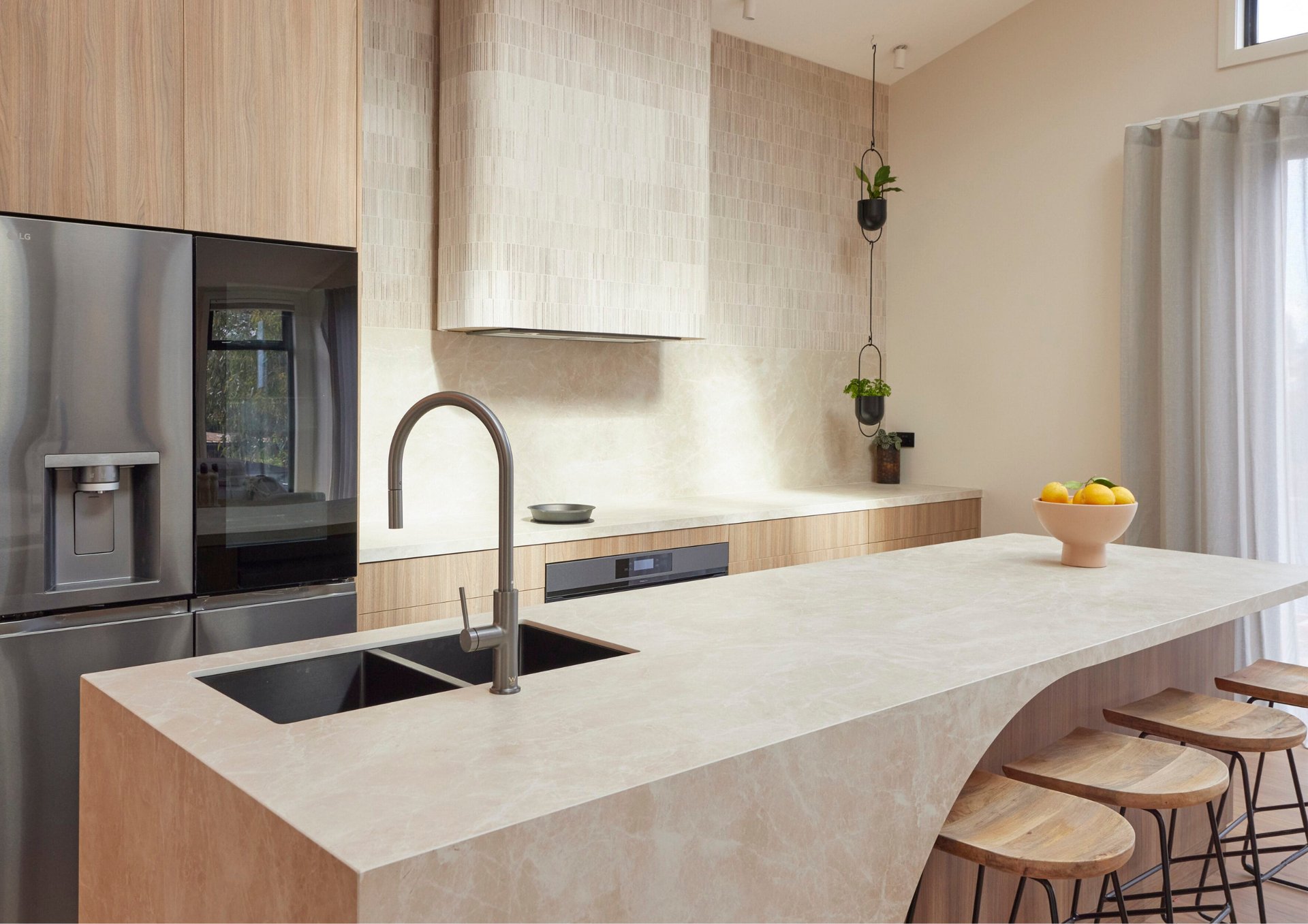 induction stove, top embedded under the stone countertop