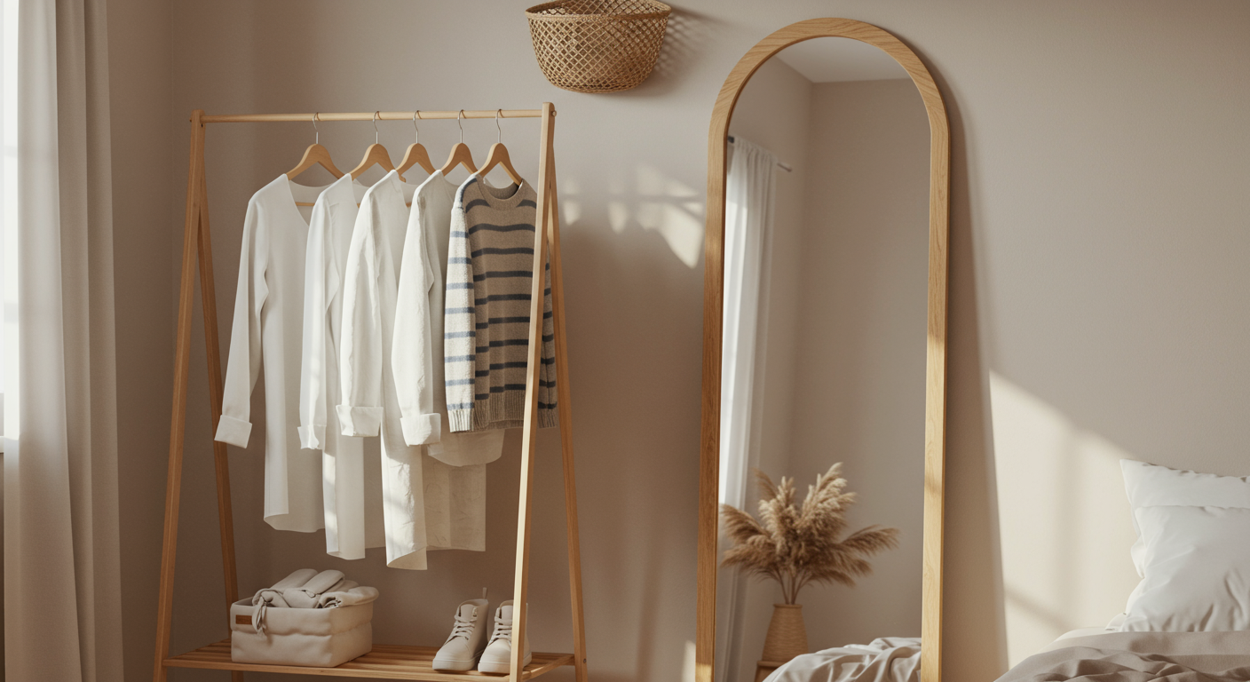 A full-length mirror is a practical addition that allows guests to check their outfits from head to toe before heading out. It’s a simple yet thoughtful touch that enhances the functionality of the room.