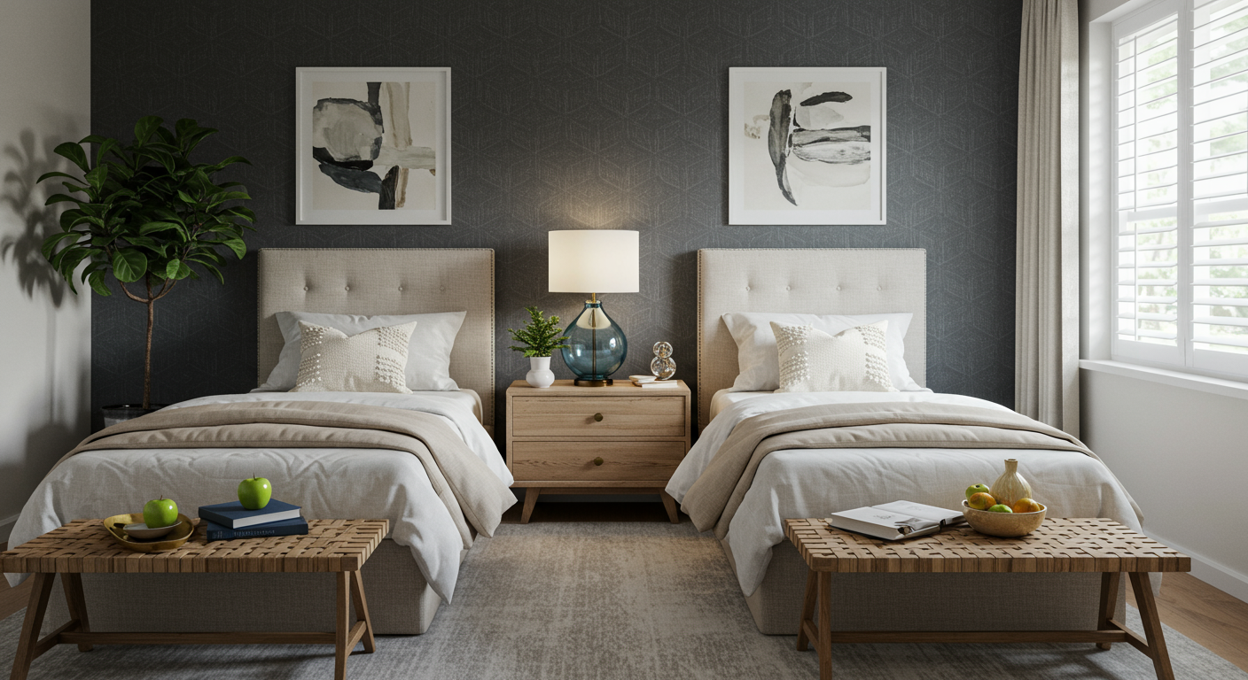 Start with a calming paint palette of soft blues, greens, or warm neutrals to create a peaceful ambiance, and consider adding blackout curtains or shades to ensure your guests can sleep comfortably, even during daylight hours.